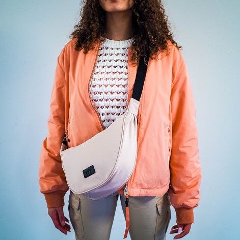 Der frühlingshafte Look von s'Oliver, mit der angesagten Bomberjacke, dem Strickpullover und der trendigen Bauchtasche vereint viele der aktuellen Trends dieser Saison.